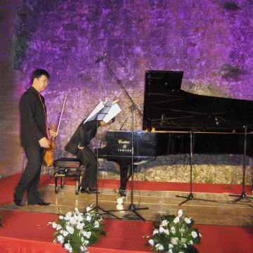 Mileto Vibo Valentia Domenica primo Agosto 2010 Magica serata di musica classica,organizzata dall'associazione culturale musicale Ars Vera,nello splendido scenario dell'area Archeologica di Mileto Antica.Lo spettacolo Musicale ha visto esibirsi due Grandi Maestri di valore Internazinale, il Violinista Feng Ning,e il Pianista Roberto Giordano.L'atmosfera suggestiva del luogo,"dove un giorno rifulse la potenza normanna",ha contribuito a far vivere con maggiore intensità e trasporto i bellissimi pezzi eseguiti dai due maestri che, con la loro maestria di esecuzione,hanno saputo suggestionare tutto il pubblico e catturarlo in un vortice di emozioni e sensazioni, dalle quali è uscito solo alla fine del programma, esplodendo in un un grandissimo e prolungato applauso e in una richiesta del bis.Per la serata, sicuramente indimenticale, vanno ringraziati l'associazione Ars Vera, la Pro-Loco l'amministrazione comunale di Mileto con in testa il Sindaco Vincenzo Varone e quanti hanno collaborato per l'ottima riuscita di questa magica serata.Ancora Tanti vivi ringraziamenti e l'esortazione a continuare a lavorare tutti insieme affinchè serate come questa mettano sempre più in risalto la Mileto culturale ,quella che un tempo fu la capitale Normanna.