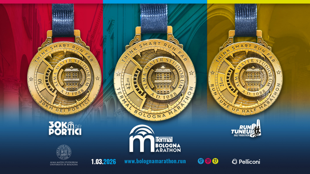 BOLOGNA – Su il sipario, si va in scena. Svelate presso il Rettorato dell’Università di Bologna le medaglie finisher per gli atleti e le atlete delle tre distanze competitive, 21,097km, 30km e 42,195 km, della Termal Bologna Marathon in programma domenica 1 marzo 2026.
