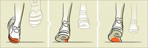 Pur essendo "progettati" per tollerare più di 200.000 chilometri, ogni giorno i piedi poggiano a terra migliaia di volte (se si conduce un movimento regolare) e il carico di pressione che deve sopportare è considerevole: una corsa di 7 chilometri (attività ad alto impatto) fatta da un individuo di 70 chili produce su ogni piede una pressione complessiva pari a 900 tonnellate. Camminando (attività a basso impatto) la pressione totale si riduce, ma sono comunque tonnellate di peso che gravano sui piedi. Anche nella vita di tutti i giorni il piede è sottoposto a stress biomeccanici: per necessità si salgono o si scendono scalini, si affrontano percorsi lunghi e stressanti, siamo obbligati a muoverci in fretta. Infine, anche il semplice stare in piedi apporta peso a carico degli arti inferiori. Quando pratichiamo dello sport, generalmente il piede è caricato di un ulteriore stress, che può comunque essere ridotto di molto con l'uso di una scarpa idonea, che scarica su di sè la gran parte delle sollecitazioni dannose per il piede ed il resto del corpo. Non sempre il piede appoggia in maniera corretta. A seconda della conformazione di piede e caviglia ma anche dall'età, vi può essere un appoggio anomalo, che carica in maniera eccessiva l'interno o l'esterno del piede. Il piede normale appoggia inizialmente sulla parte esterna del tallone, successivamente, con movimento rotatorio, scarica il peso verso la punta e inclinandosi appoggia sull'arco plantare. Questo movimento, che viene definito pronazione, aiuta al piede a smorzare l'impatto con il terreno. |