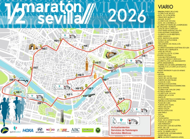 Il tracciato si snoda nel cuore della capitale andalusa, offrendo agli atleti una vera e propria esperienza turistica di corsa!