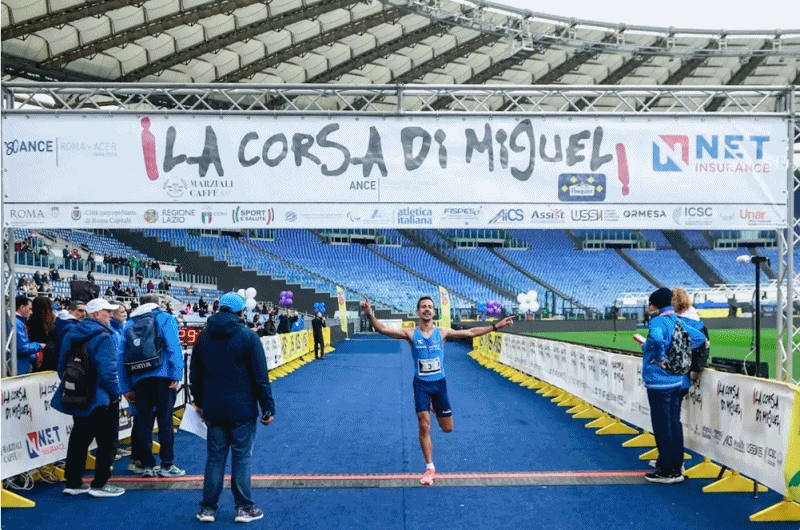 arrivo, dentro lo stadio Olimpico, luogo simbolo della corsa diventata in questi 26 anni di storia una giornata di festa dello sport e della solidarietà. E nello stadio è entrato anche l’argentino Martin Sharples, l’atleta paralimpico amico di Miguel Sanchez che ha corso con la maglietta dell’Argentina con una dedica a Giorgio Lo Giudice, presidente del Club Atletico Centrale organizzatore della Corsa di Miguel scomparso lo scorso 4 giugno. Dedica a Giorgio che era stampata anche sulle 15.000 maglie ufficiali della gara, per ricordare la sua grande passione per l’atletica leggera e per la Corsa di Miguel.
