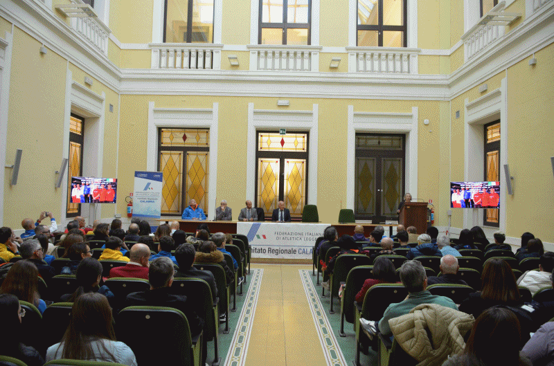 Presso la Sala Francesco Perri di Palazzo Corrado Alvaro, sede della Città Metropolitana in Piazza Italia, si è tenuta la “Festa dell’Atletica Calabrese 2025”, la tradizionale cerimonia di premiazione organizzata dal Comitato Regionale Calabro della FIDAL, sotto la guida del suo Presidente, il Professor Vincenzo Caira che nel suo intervento ha ringraziato tutti i presenti e ha elogiato il lavoro di tutti gli attori dell'atletica calabrese, sottolineando il valore del movimento sportivo regionale.